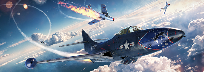 This formidable Tier IX multirole fighter is capable of engaging enemies at range and outshooting nearly any opponent of its class. Its battery of four nose-mounted Colt Mk 12 autocannons provides devastating firepower at medium and close ranges, making the Panther extremely dangerous in direct engagements. And it has ground-pounding capabilities to boot: six late-model HVAR rockets and two 500-pound bombs that pack a serious punch! Its airframe is on par with the armament. The Panther is highly durable, resistant to critical damage, and surprisingly maneuverable. Its main weakness is its engine, an early jet design that is capable of rather average speed and thrust characteristics, which may make hit-and-run attacks difficult. But who cares about that if you can just weather the storm of a blistering dogfight?